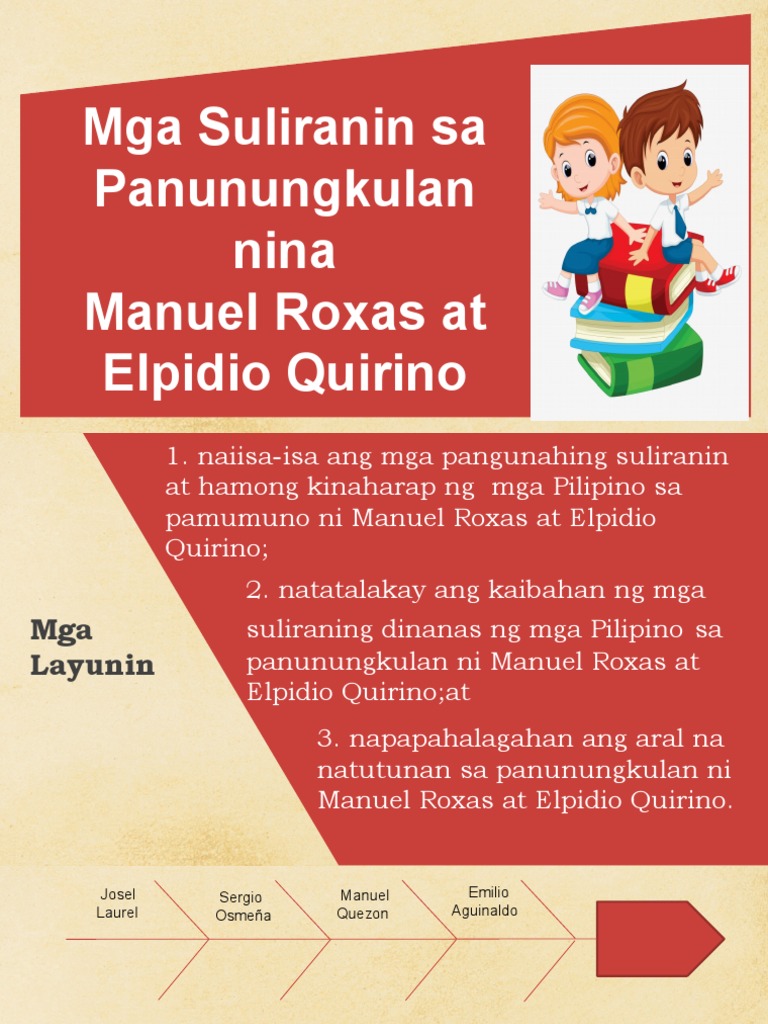 Elpidio Quirino from image.slidesharecdn.com Feb 22, 2017 · mga salik ng pagkakaroon ng pag unlad ng nasyonalismo sa japan ang mga sumusunod ay ilan lamang sa mga naging dahilan kung bakit umusbong ang nasyonalismo sa japan panunumbalik at pagsasa ayos sa meiji muling pagbubukas ng bansang japan sa kalakalan sa ibang bansa noong 1853. Sep 14, 2014 · pagharap sa suliranin sa huk isa sa mga ginawang hakbang ni quirino upang masugpo ang paglaganap ng pananalasa ng mga huk sa bansa ay ang pagpapalabas ng proklamasyon noong hunyo 21, 1948 hinggil sa pagbibigay ng amnestiya (ganap na pagpapatawad) sa mga kaspi ng huk na magsusuko ng kanilang sandata sa loob ng 50 araw. Ito ay nagsimula sa pagdating ni commodore matthew perry